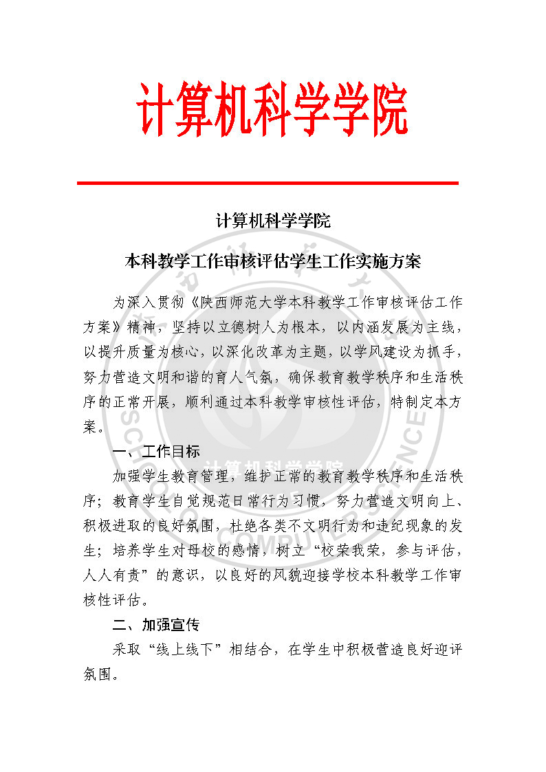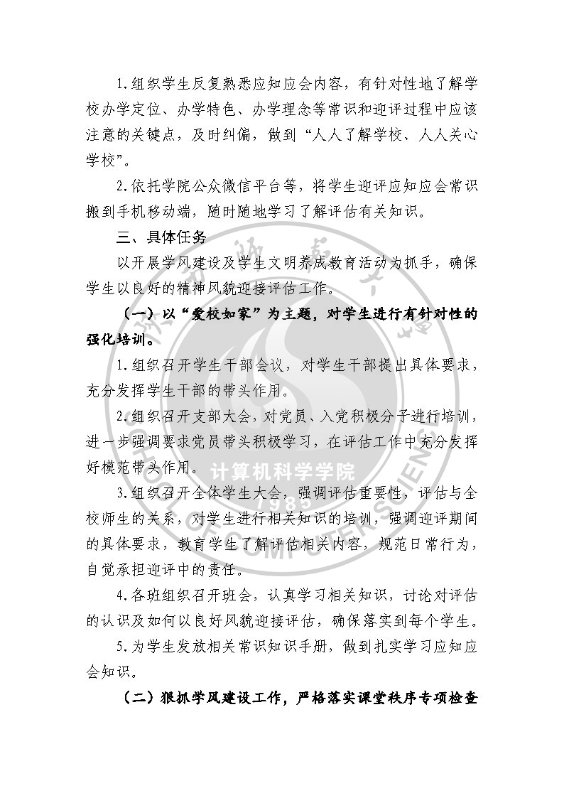 计算机科学学院本科教学工作审核评估学生工作实施方案