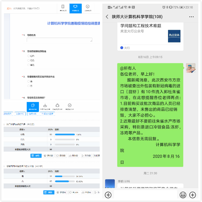 在疫情防控方面,整个假期学院通过微信群、问卷调研、电话联络等方式,及时发布消息,落实相关信息,做到疫情防控稳中有序。
