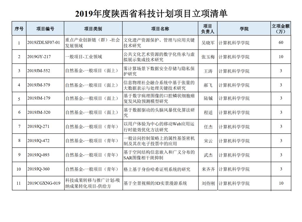 近日,陕西省科学技术厅公布了2019年陕西省科技计划项目资助结果,龙8在线登录官网-龙8(中国)11项项目获得项目资助,其中,点产业创新链(群)项目1项,工业领域项目1项,自然科学基础研究计划项目-面上项目4项,自然科学基础研究计划项目-青年基金4项,科技成果转移与推广计划-吸纳成果转化项目1项,立项经费104万元,立项经费总数位居全校第三。