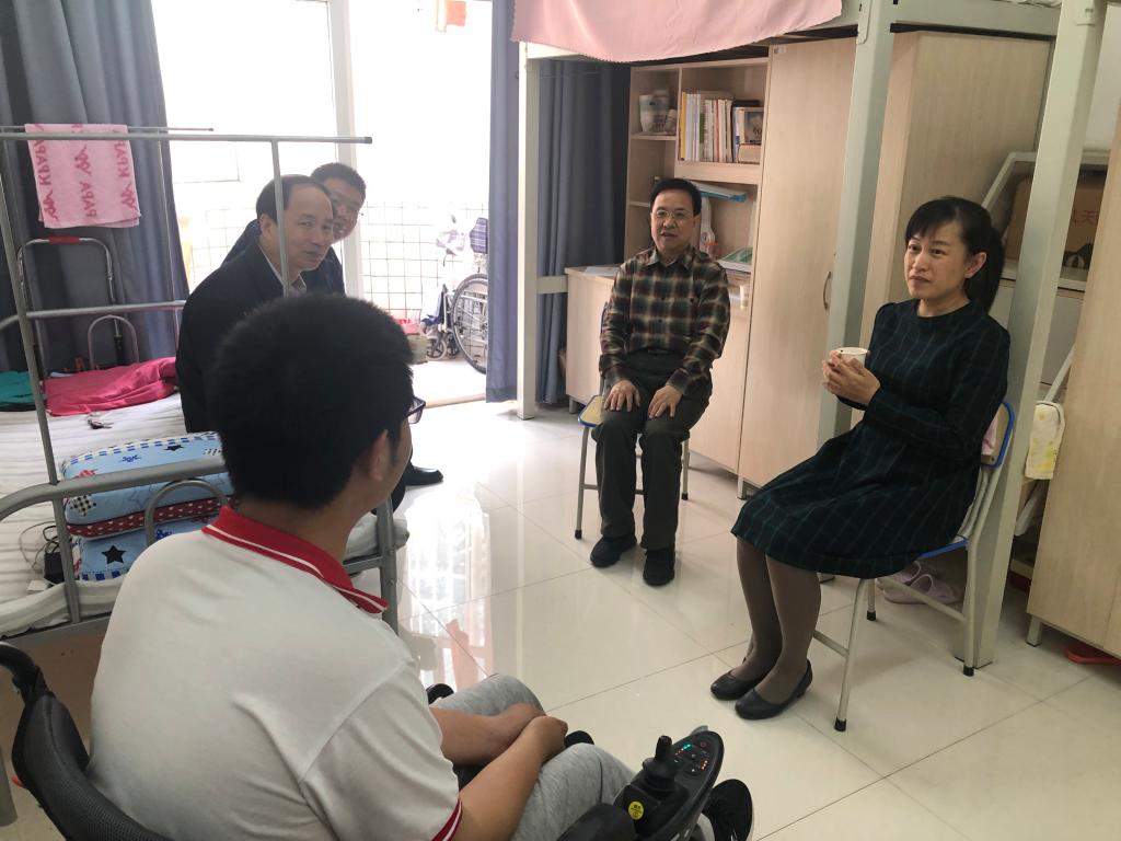 王院长、黄书记等学院领导来到邓龙彦宿舍,与学生亲切交谈,询问学生的生活、学习、身体状况和目前存在的困难。