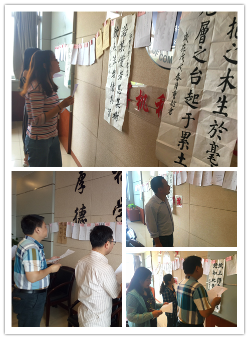 袁冰与观展评委们进行了交流,她谈到,总书记的一系列重要文章、讲话、访谈等,形成了独具个性的“习式风格”,总书记在系列重要讲话文章中多处引经据典,此次书法作品展示了龙8在线登录官网-龙8(中国)同学在书法方面的特长,但活动更重要的是为了促进同学们对习近平用典的精妙意境的深刻理解,加深对中华优秀传统文化的热爱和面向世界、面向未来的强烈文化自信。