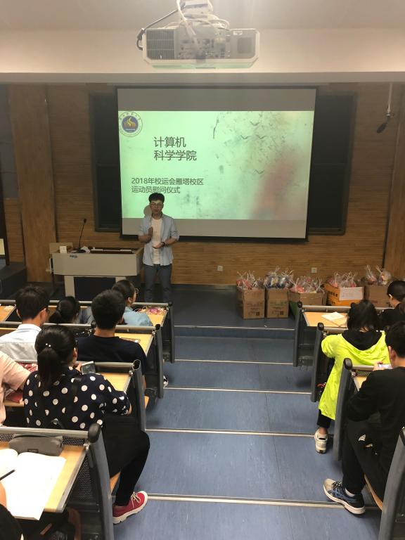 4月22日晚,2017级辅导员陈应权代表学院在教学五楼5104慰问了学院雁塔校区校运会参赛运动员,给予了运动员们详细的指导和鼓励。