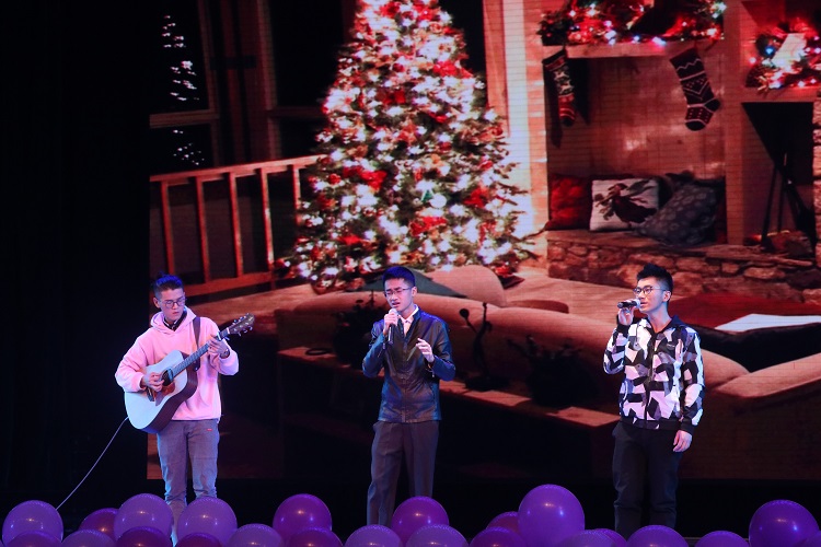 龙8在线登录官网-龙8(中国)教职工子女可爱的童声朗诵过后,开始了师生合唱——《大中国》,此合唱队由龙8在线登录官网-龙8(中国)黄昭、马苗、田丰、杨婷等教师及15级计创班全体同学组成,他们饱含热情,充满希望,令人荡气回肠的一句“我们的大中国呀,好大的一个家”,让在场观众的民族自信油然而生。由曹旭东和杨思誉同学带来的相声《非常访谈》用幽默诙谐的台词告诫同学们,当代大学生需学有所成,勿成“砖家”。流行歌曲《修炼爱情》配上了古典的舞蹈,现代与古风的结合成为这个节目的一大亮点,令观众赞叹不已。各种古典乐器和钢琴合奏的《大鱼》韵味盎然,博得了台下阵阵掌声,这个节目让我们看到,中国文化博大精深,在数千年的发展中日益璀璨,备受世界各国人民、当代青年瞩目。由宋星辰、宋澳华、张雅楠等同学带来的风趣幽默的小品《人生自古谁无死》揭示了人生在于奉献的真谛,赞扬了勇于奉献、顽强拼搏的高尚品质。紧接着文根峰、邓乐涛、陈援、李文佳、郝佳琪等的阿卡贝拉《five hundred miles》、《That's Christmas to me》不仅调动了全场欢快活跃的气氛,还唤起了不远万里来师大求学的莘莘学子思乡之心,为新的一年的到来增添温馨和感动。由米智、杜婉宁、梁啸、杨佳颖、赵雨晨表演的《春风十里&Yellow》给全场同学们带来了一场悦耳动听的视听盛宴。