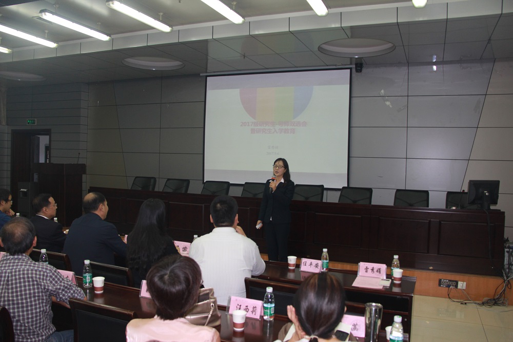 随后,雷秀娟副院长向同学们解读师生双选情况,详细介绍了研究生分类及导师组、分配原则及研究生招生情况、留学生情况、研究生培养方案和研究生毕业资格认定办法等。她希望同学们能够合理安排时间,保证充分的科研实践,认真对待学术,圆满完成学业。