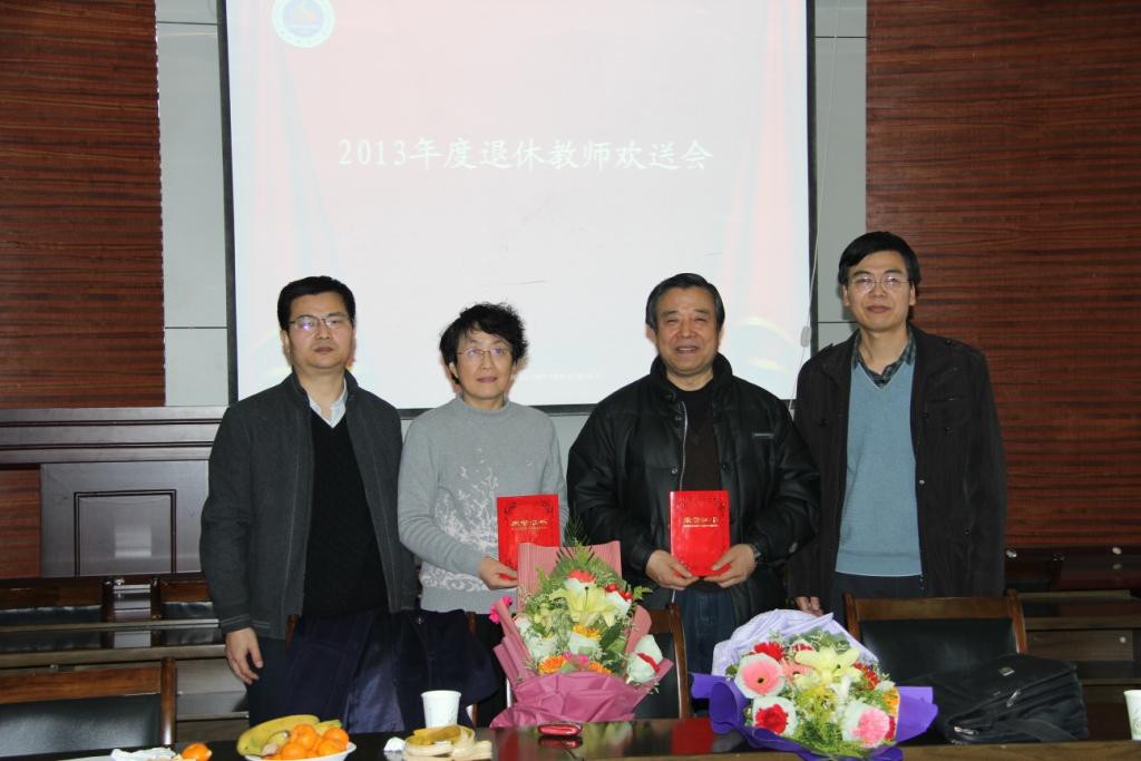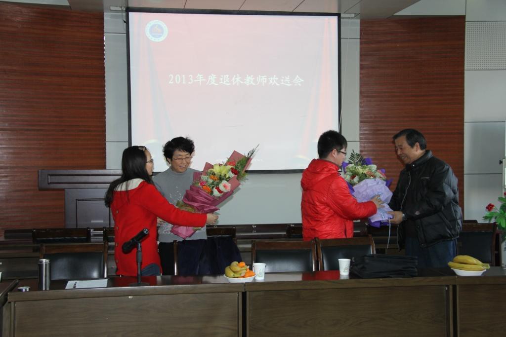 12月31日下午,龙8在线登录官网-龙8(中国)2013年度退休教师欢送会在学院学术报告厅隆重举行,龙8在线登录官网-龙8(中国)领导班子、教师代表及学生代表20多人,欢聚一堂,热烈欢送王四万、田娅薇两位老师光荣退休。