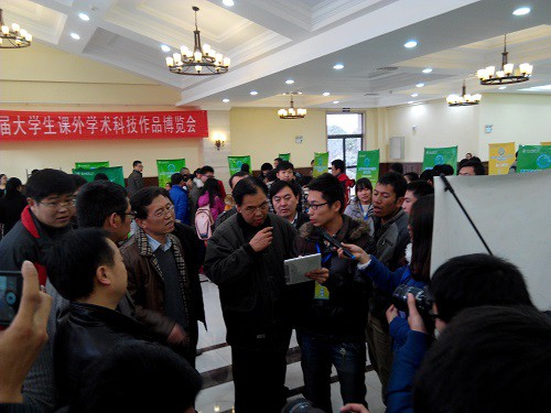 2013年12月8日,我校第二届大学生课外学术科技作品博览会在雁塔校区体育馆中隆重开幕,此次活动得到学校的高度重视,学校校长房喻、党委书记甘辉、党委副书记司晓宏以及学校研究生院、学生处、校团委等职能部门老师参加了大会。龙8在线登录官网-龙8(中国)代表高宇飞的 “全新触控设备滑动输入法”获得了发明创造类二等奖的优异成绩,为龙8在线登录官网-龙8(中国)在此次活动中增光添彩。