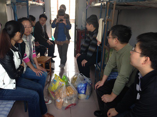 在抵达河南后,裘院长一行由带队老师赵志博带领,首先走进了学生的宿舍和办公室,深入体察和询问大家的生活和学习状况,并给实习生们送去了慰问品。随后,裘院长一行与南阳市第八中学领导、指导教师、带队教师以及全体实习生进行了深度座谈。座谈会上,南阳市第八中学领导对我校领导老师的到来表示了热烈的欢迎。在介绍了学校的校园环境、教学管理和实习生的状况后,南阳市第八中学领导老师肯定了我校实习生良好的精神面貌,谦虚好学的态度,扎实的基本功和踏实敬业的工作作风,同时表示希望加强与师大的交流合作,不断加深两校的友谊。