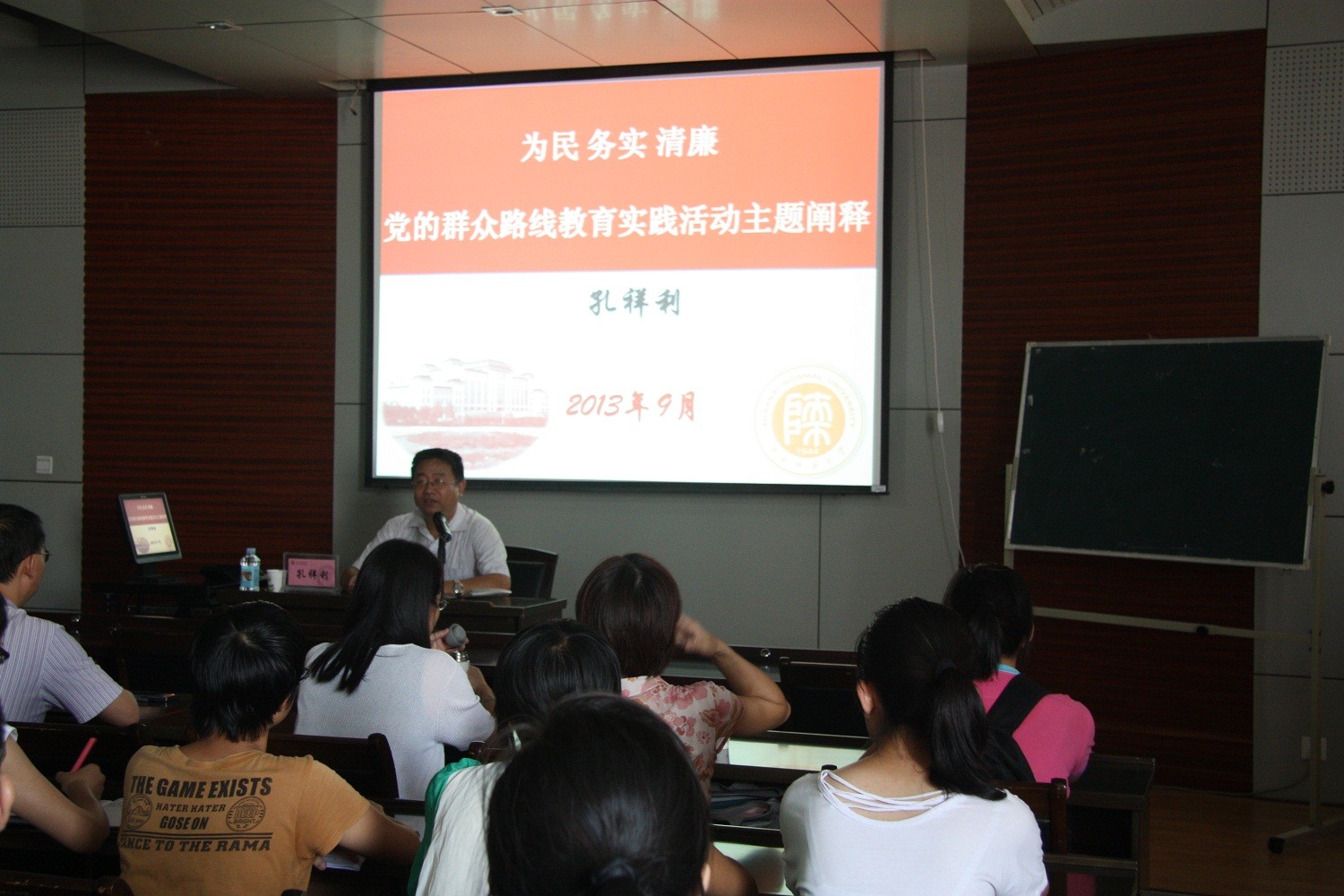 | 为了推进学院更好的开展党的群众路线教育实践活动,为扎实开展党的群众路线教育实践活动提供思想保障,龙8在线登录官网-龙8(中国)于9月12日下午,特别邀请我校党的群众路线教育实践活动宣讲团成员、党委宣传部部长孔祥利教授,在学院报告厅为龙8在线登录官网-龙8(中国)师生党员做了题为《为民务实清廉:党的群众路线教育实践活动主题阐释》的报告。报告会由龙8在线登录官网-龙8(中国)党委书记胡波主持,学院党政领导班子成员、教师党员、学生党员代表聆听了报告。 报告中,孔教授以“为民务实清廉”为核心,从三个方面阐释了党的群众路线教育实践活动的主题。在对“为民务实清廉是党的群众路线时代内涵”的阐述中,孔教授谈到“一切为了群众、一切依靠群众,到群众中来,到群众中去”,是我们党坚持贯彻执行群众路线的经典论述,而现如今,党正面临着执政、改革开放、市场经济和外部环境四大考验,党员干部也面临着精神懈怠、能力不足、脱离群众、消极腐败四大危机。他以苏共为例,深入剖析了党的群众路线的重要性,而深入开展以为民务实清廉为主题的党的群众路线教育实践活动,是实现党的十八大群定的奋斗目标,保持党的先进性和纯洁性,巩固党的执政基础和地位的必然要求,是我党聚人气、顺民意、促改革的重要途径和举措。 接着,孔教授就如何深入理解为民、务实、清廉做了详尽的阐释。为民是坚持党的群众路线的目的。一切为了人民,是我们共产党人的最高追求,中国革命的胜利也正是遵循了得民心者的天下的朴素道理;务实是坚持党的群众路线的途径。如今在部分党员干部当中,形式主义和官僚主义问题还比较明显,享乐主义和奢靡之风仍有不同程度的表现,并具体分析了我校在“四风”问题上还存在的问题;清廉是坚持群众路线的保障,党和国家领导人经常在各种场合号召我党干部保持清廉的作风。 最后,孔教授号召在座的党员同志们,要牢牢把握为民务实清廉的活动主题,在开展党的群众路线教育实践活动中,牢固树立“师生为本”的理念,坚持重实际、求实效,解决师生关系的实际问题,做到风清气正。 孔教授的报告受到了在场师生的热烈欢迎和强烈共鸣。通过孔教授对党的群众路线教育实践活动主题的阐释,大家对此项活动有了更加深入的认识,并表示一定按照中央及学校 |