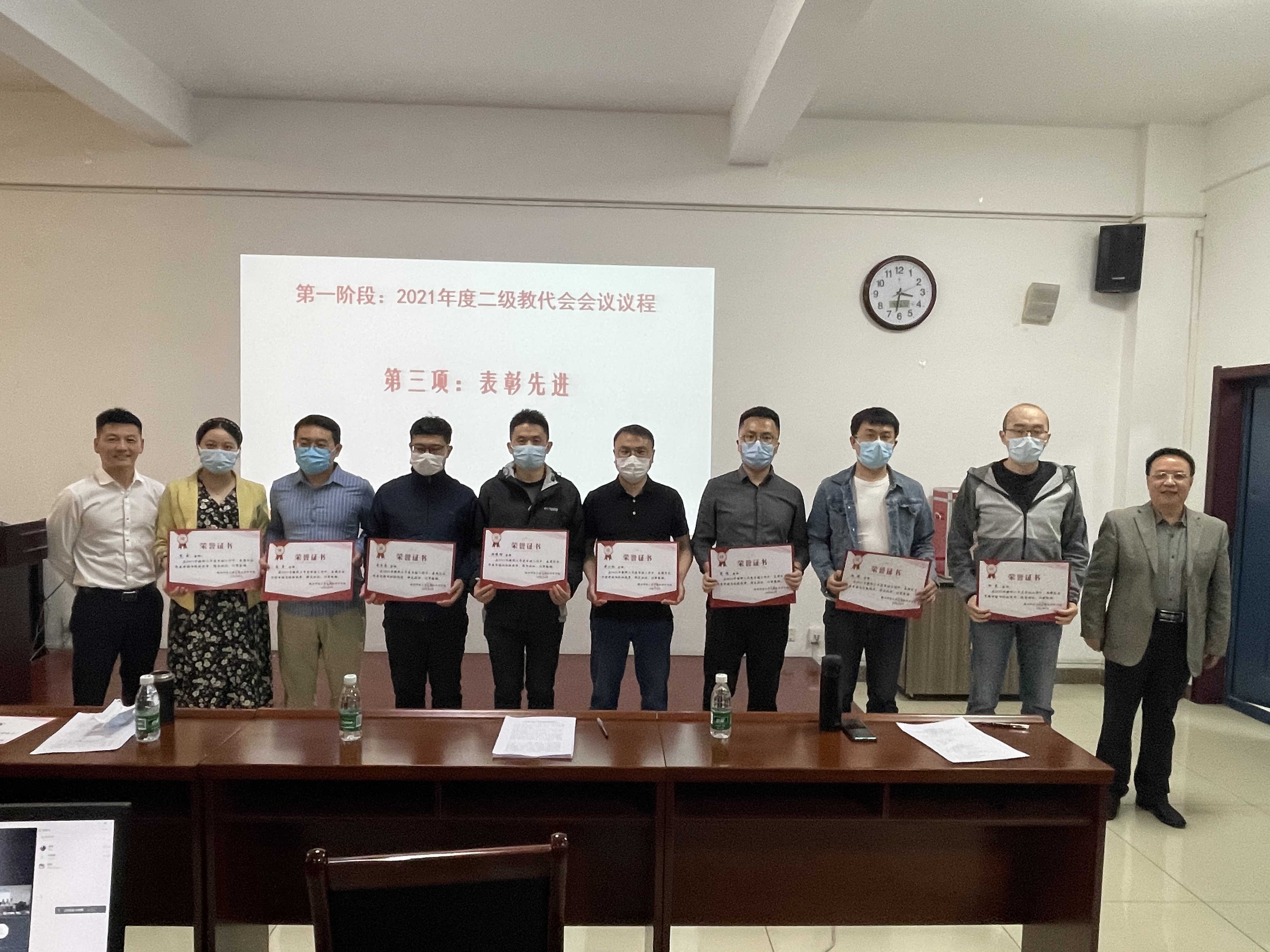 随后党委书记王耀明做了班子民主生活会情况通报,并对在2021年度工作中表现突出的先进个人进行了表彰。