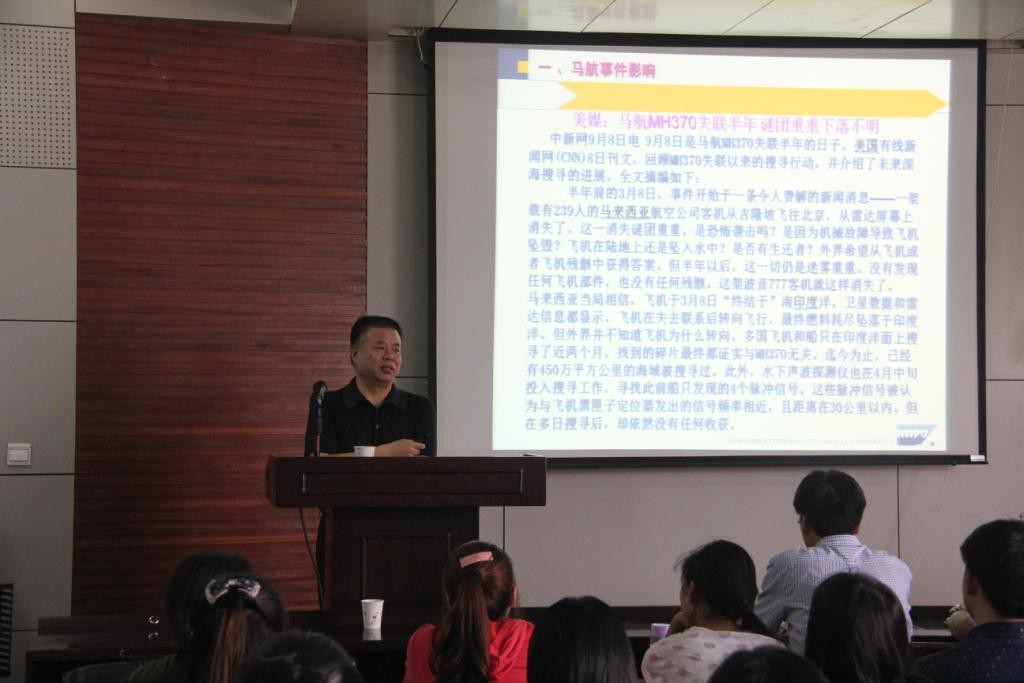 龙8在线登录官网-龙8(中国)举办的“70周年校庆系列学术活动”继续开展。2014年9月12日下午16:00,龙8在线登录官网-龙8(中国)有幸邀请到了西北工业大学史忠科教授,在学术报告厅做了题为《马航事件对信息及相关学科提出的挑战》的学术报告,本次报告由龙8在线登录官网-龙8(中国)院长李永明教授主持,部分教师、博、硕士研究生聆听了此次报告。
