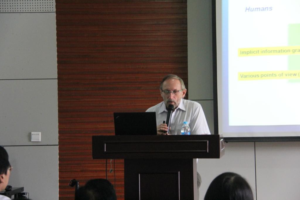 Witold Pedrycz教授本次报告题目为《模糊模型和粒化模糊模型:寻求计算智能的新途径》。在报告中,Witold Pedrycz教授首先介绍了模糊建模、信息粒、信息粒化和粒化计算等相关概念,并结合智能数据分析、图像处理和问题约化等背景给出了一些生动的例子。他指出信息粒可以在不同的形式框架中获得实现,包括区间、模糊集、粗糙集、阴影集和概率分布函数等,而粒化计算则致力于提供处理不同形式信息粒的统一理论构架。随后,Pedrycz教授从信息粒化的合理性准则、信息粒化的分配机制和信息粒化层次的提升这三个方面详细解释了粒化计算中的若干基本原则。最后,Pedrycz教授还结合模糊聚类介绍了关于算法实现的一些具体问题。