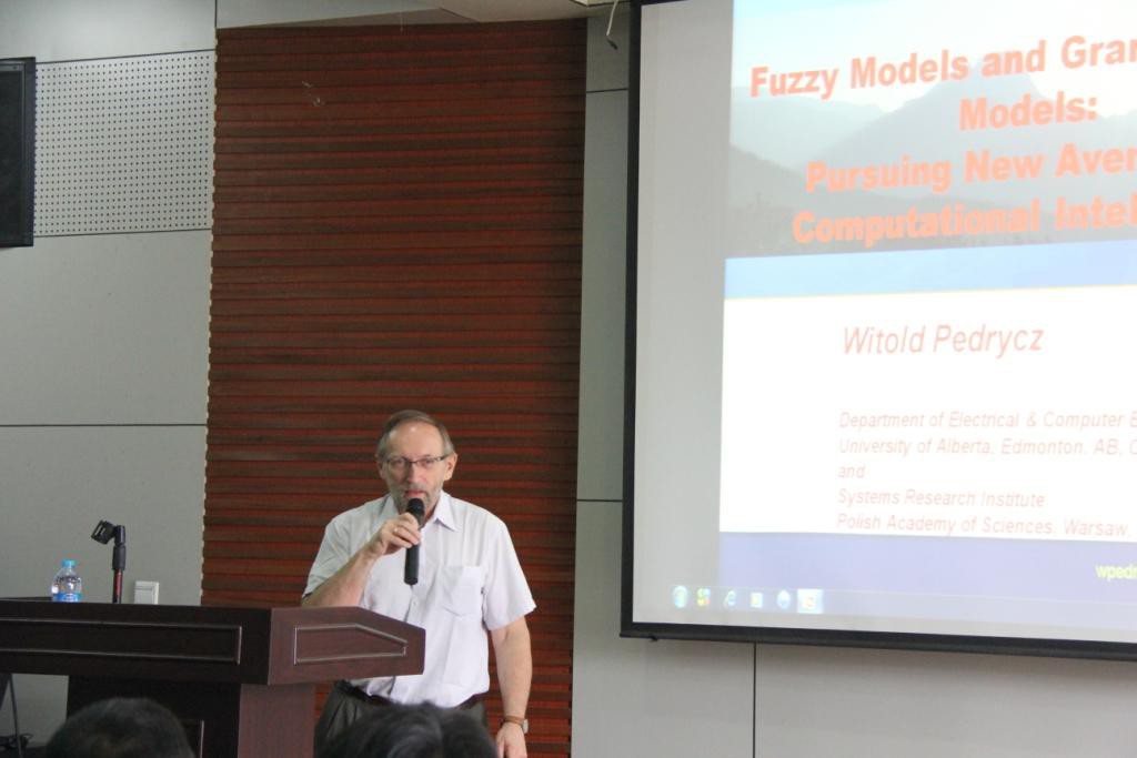 龙8在线登录官网-龙8(中国)举办的“70周年校庆系列学术活动”继续开展。2014年7月23日上午9:30,龙8在线登录官网-龙8(中国)有幸邀请到了加拿大阿尔伯特大学Witold Pedrycz教授,在学术报告厅做了题为“Fuzzy Models and Granular Fuzzy Models: Pursuing New Avenues of Computational Intelligence”的学术报告。本次报告由龙8在线登录官网-龙8(中国)院长李永明教授主持,部分教师、博士研究生以及硕士研究生聆听了此次报告。