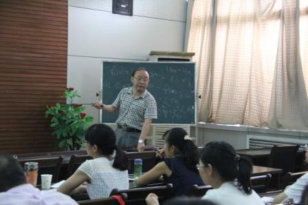 接着,屈长征教授做了有关《非线性演化方程的对称和不变子空间》的报告,报告中屈教授首先向我们解释了非线性演化方程中的对称群问题,接着通过许多例子具体阐述了非线性抛物型方程的条件对称和不变子空间及其有关的证明,最后介绍了方程组不变子空间里维数的确定。