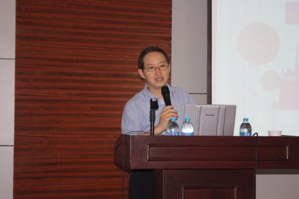报告中姜教授主要围绕Mobile Ad Hoc Networks (MANETs)展开讲解。姜教授首先指出在MANETs网络中由于移动结点的随机性造成网络性能分析的难度很大,所以MANETs的研究具有很大的挑战性。接着姜教授讲解了MANETs原理以及MANETs容量并且提出了一个与网络容量相关的理论,指出该理论具有极大的意义,在诸多领域里发挥着作用,例如在现代通信业的发展中就有着举足轻重的作用。最后姜教授向我们展示了他最近的研究进展,例如在确定性MAC协议下的MANETs容量等,姜教授还向我们讲解了网络模型、功率控制下的网络容量的研究、f-cast中继下的网络容量、结点探测下的网络容量的研究等等。