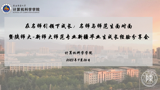 为庆祝第39个教师节,发挥教学名师在师范生教育中的引领示范作用,传承百年建党精神,践行“西部红烛,两代师表”精神,龙8在线登录官网-龙8(中国)联合新疆师范大学计算机科学学院于2023年9月26日在陕师大长安校区文津楼3425报告厅以及腾讯会议举办了“在名师引领下成长:名师与师范生面对面暨陕师大-新师大师范专业新疆毕业生成长经验分享会”的混合线上线下学术报告与经验交流活动。