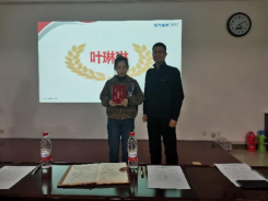 接着,优秀非师范实习生李欣瑶同学发言。她谈到,在此次校外实习中,她们真正体会到了作为一个团队共同完成任务的团队凝聚力。在这段时间内,不仅提高了专业知识,提高了自身技能,也培养了团队精神,提高了综合能力。