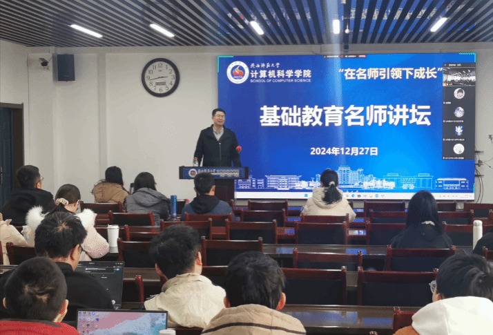 活动特邀来自信息技术学科的基础教育一线高级教师、我校兼职特聘教授——西安交通大学附属中学蒋帅老师。学院副院长李鹏、师范专业责任教授范虹、师范专业负责人洪灵、研习指导老师王伟宇以及2021级计算机科学与技术专业全体公费师范生参加了此次活动。活动由学院教学教育课程群团队负责人雷鸣主持。