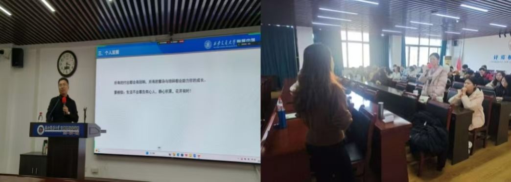 活动第三项为师生互动交流。同学们结合自身的实习和研习过程,纷纷提出了包括教学管理、竞赛指导、个人心态等在内的诸多问题。蒋老师结合自身成长经历对大家的问题做了一一解答。另外,王伟宇老师从研习指导老师的角度,结合自身的历年指导经验,为同学们提供了诸多宝贵参考建议,此次活动在热烈的掌声中圆满结束。