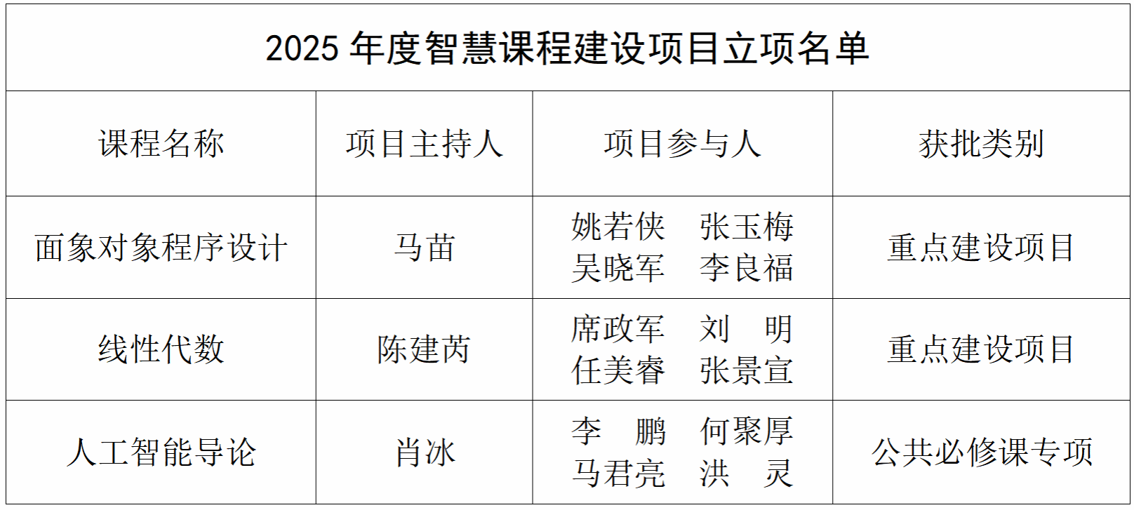 根据《关于开展2025年度智慧课程建设项目申报的通知》相关要求,经个人申报、学院推荐、专家评审和结果公示等环节,全校共立项智慧课程建设项目56项,专业知识图谱建设项目8项,龙8在线登录官网-龙8(中国)获批情况如下。