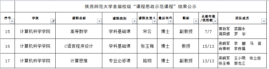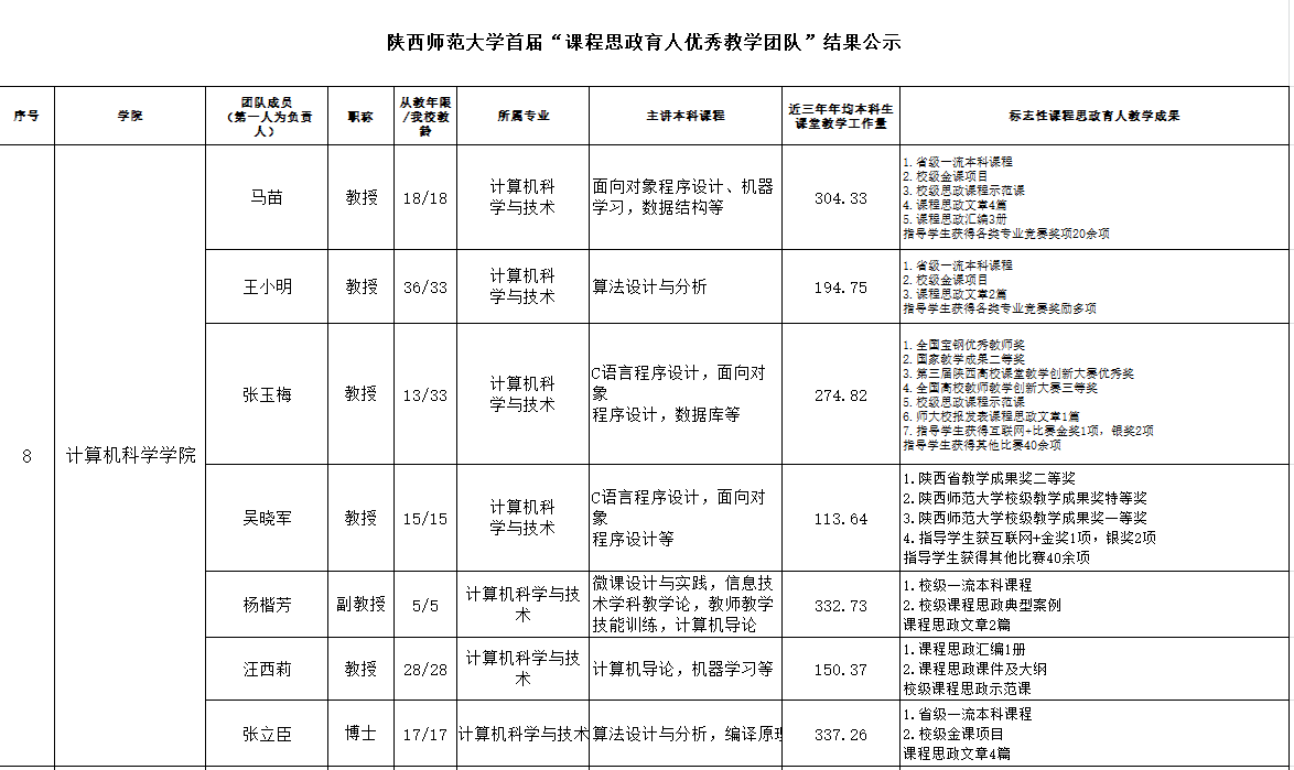 根据《陕西师范大学校级“课程思政示范课程”和“课程思政育人优秀教学团队”评选及奖励办法》、《关于开展首届校级“课程思政示范课程”和“课程思政育人优秀教学团队”评选活动的通知》相关文件精神,在个人申报、学院推荐的基础上,经学校材料初评、课堂教学评价、综合评议三个环节审议,龙8在线登录官网-龙8(中国)3门课程和1个教学团队脱颖而出,获得佳绩。本次全校获评20门课程思政示范课和5个课程思政育人优秀教学团队。龙8在线登录官网-龙8(中国)名单列表如下: