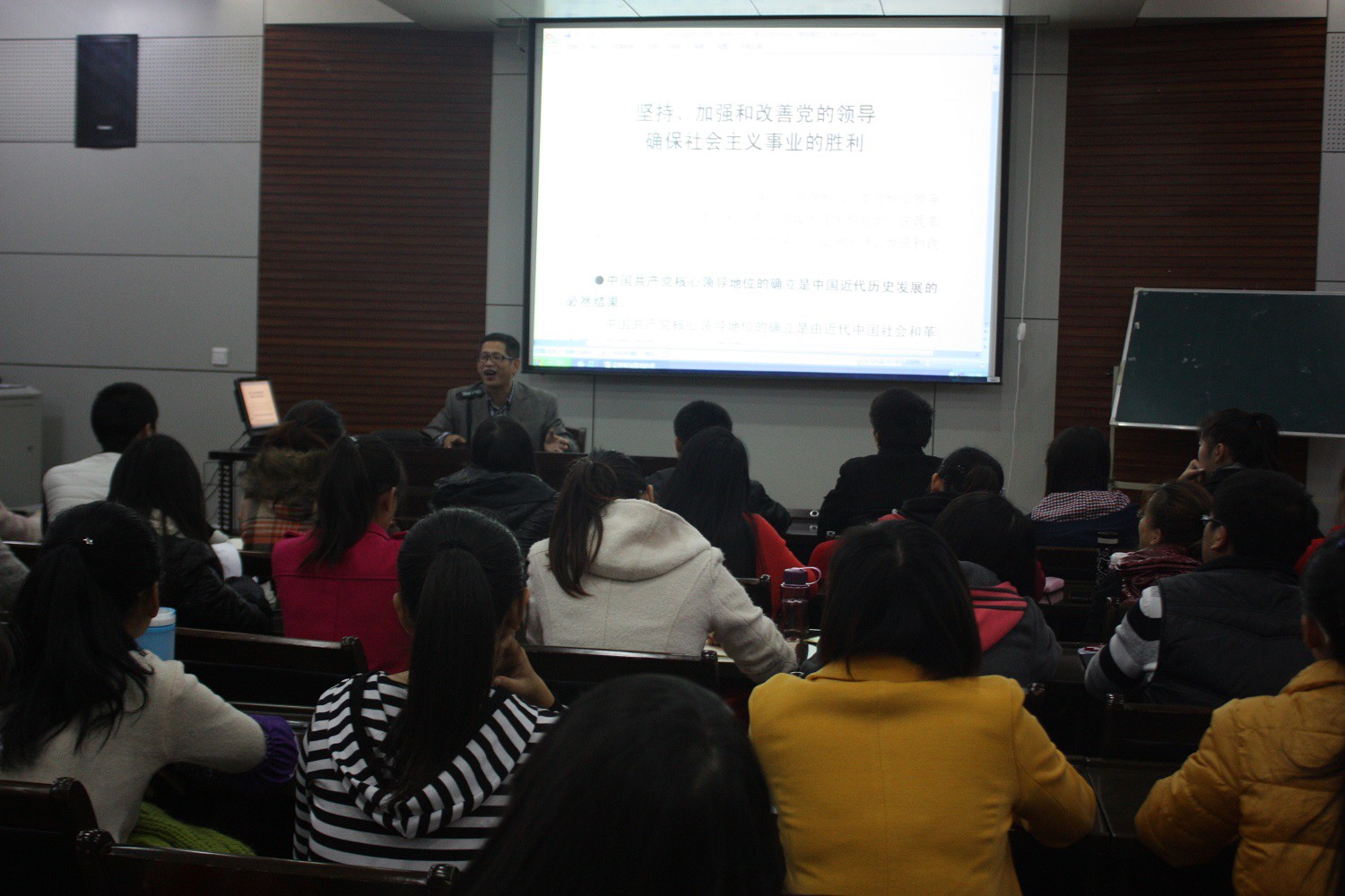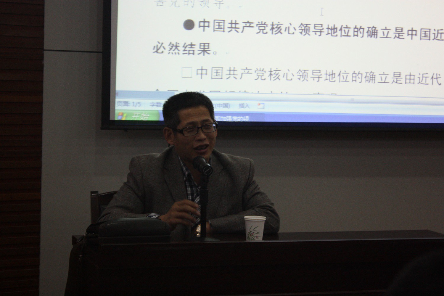 首先,刘老师就该主题进行了详细的讲解,他表示当代大学生要有勇往直前的锐气,敢为天下先的勇气,放眼未来的大气。刘老师激情澎湃的讲说激起了同学们的强烈共鸣。接着刘老师对“中国共产党核心领导地位的确立是中国近代历史发展的必然结果”这个问题进行了详细生动的讲解。刘老师指出,一切事物的发展都是要符合客观规律的,只有遵循这一规律,才能够披荆斩棘,突破重围,否则将会遭遇穷途末路的困境。最后,刘建军老师激励同学们要时刻保持理论学习的热情,始终如一,不断学习,与时俱进,用科学的理论武装自己,并希望同学们在追求自己理想的同时,要脚踏实地,根据自身的特点制订适合自己的目标。此次培训讲座在同学们热烈的掌声中取得圆满结束。