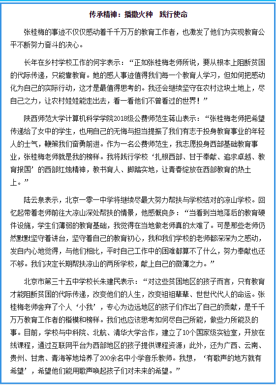 近日,中央宣传部向全社会宣传发布张桂梅同志的先进事迹,授予她“时代楷模”称号。龙8在线登录官网-龙8(中国)学子通过各种渠道观看“时代楷模”发布仪式,展开热烈的学习和讨论,受到了《光明日报》的关注和报道。