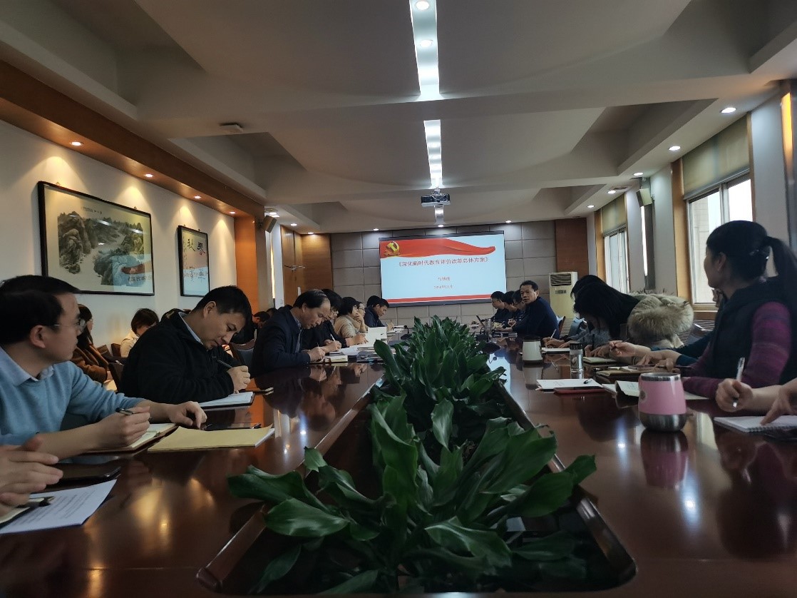 会场内,同志们听得认真,记得仔细,思想在交融,共识在凝聚,信心在提振。通过学习,同志们充分认识到《总体方案》是以习近平同志为核心的党中央做出的重大教育决策部署,回应了群众关切,体现了时代要求,为深化新时代教育评价改革指明了前进方向、提供了根本遵循,对于全面贯彻党的教育方针,完善立德树人体制机制,破除“五唯”顽瘴痼疾,确保正确办学方向,促进教育高质量发展,加快推进教育现代化、建设教育强国具有重大意义。