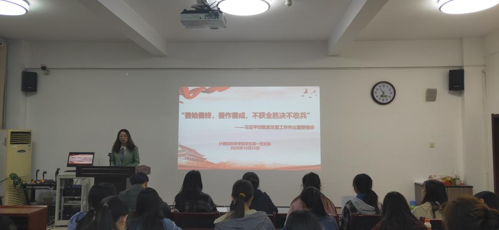 为深入学习领会习近平总书记关于脱贫攻坚、全面建成小康社会的重要论述,进一步深化对全面建成小康社会理论与实践的研究、阐释、宣传,龙8在线登录官网-龙8(中国)学生第一党支部于10月25日晚19:00在文津楼3412报告厅举行了“善始善终,善作善成,不获全胜不收兵”主题学习活动,活动由第三党小组组长李雨晨同志主持。