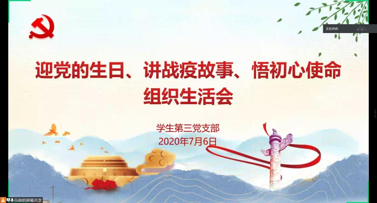 2020年7月6日晚,龙8在线登录官网-龙8(中国)学生第三党支部通过腾讯会议线上召开组织生活会,会议围绕“迎党的生日、讲战疫故事、悟初心使命”主题展开。支部书记任仰主持会议,支部全体党员和积极分子代表参加了本次生活会。