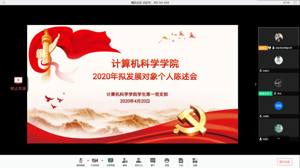 为加强龙8在线登录官网-龙8(中国)本科生党员队伍建设,改善党员队伍结构,提高党员队伍素质,龙8在线登录官网-龙8(中国)学生第一党支部于2020年4月20日召开了2020年拟发展对象个人陈述会。龙8在线登录官网-龙8(中国)党委副书记袁冰,专职组织员、团委书记郭康凌,辅导员安琪、崔瑜璠出席本次会议。本次会议由党支部书记陈应权主持,龙8在线登录官网-龙8(中国)27名本科拟发展对象参加。