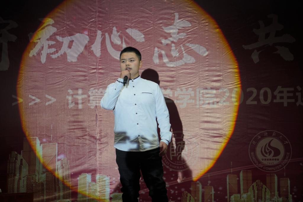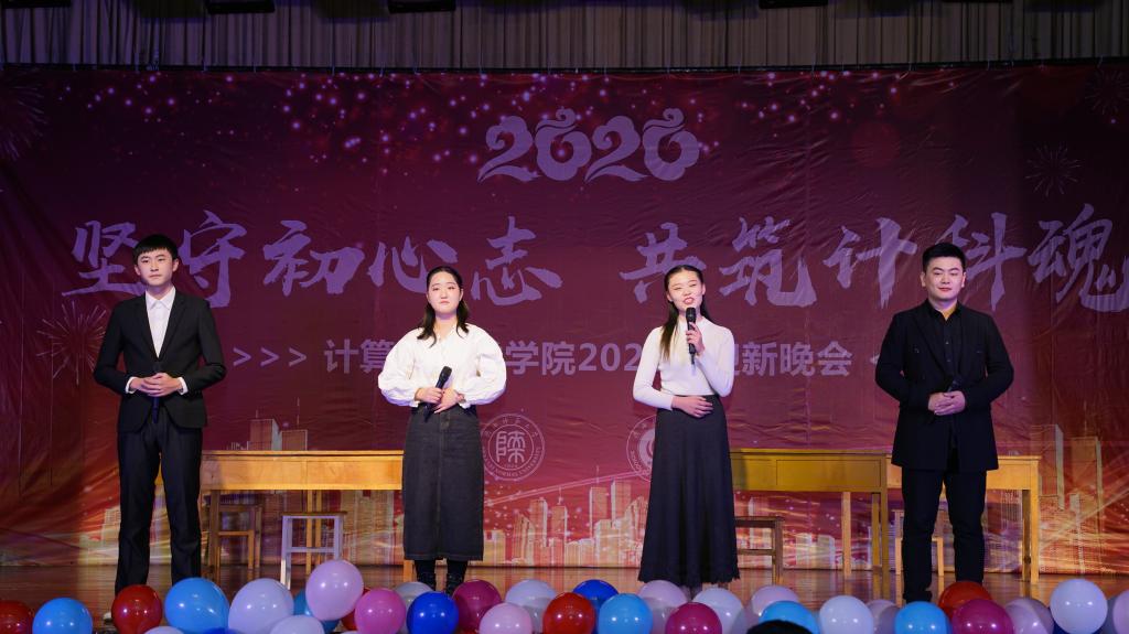 12月13日晚,龙8在线登录官网-龙8(中国)2020年“坚守初心志、共筑计科魂”迎新晚会在雁塔校区积学堂成功举办。学院班子成员、教师代表、各年级辅导员莅临晚会现场。龙8在线登录官网-龙8(中国)2019级本科生辅导员崔瑜璠、2018级软件工程1801班康译文、2019级计算机类1901班马彬杰以及2019级计算机科学与技术1901班文皓彦担任晚会主持人。