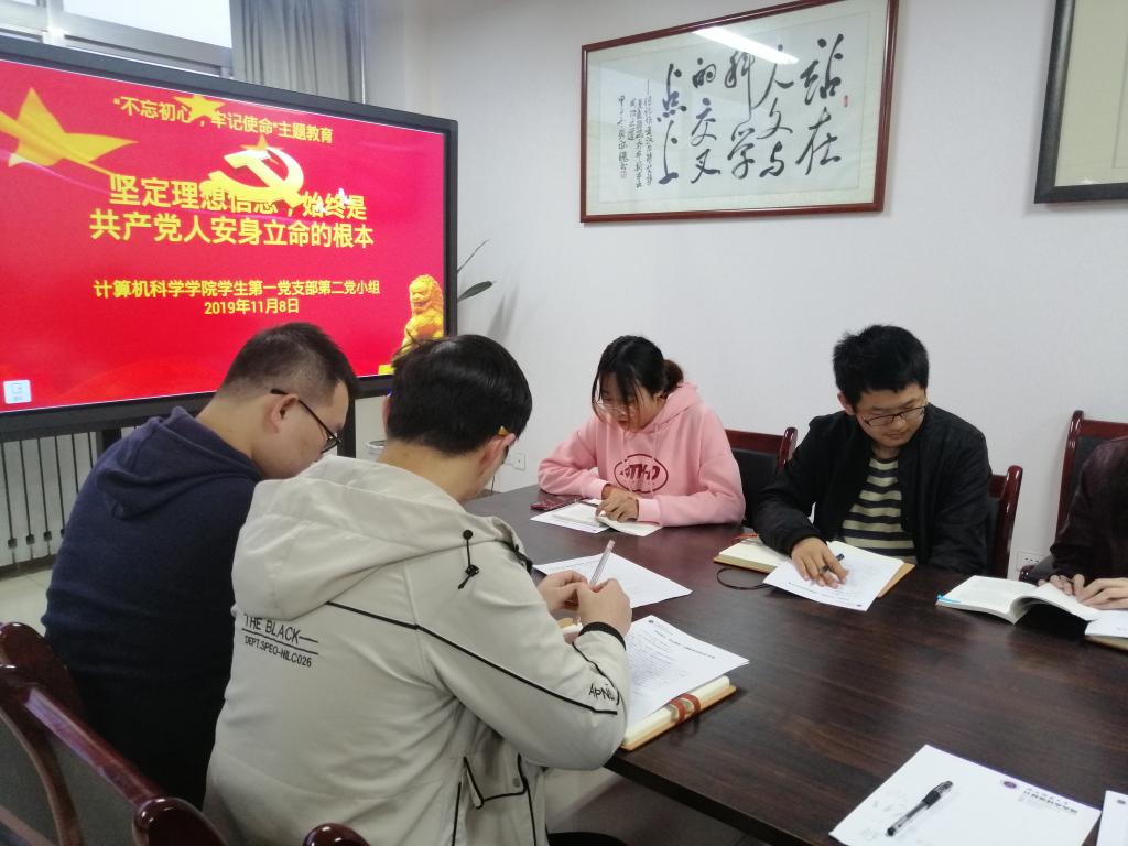 按照学校党委部署,根据学院“不忘初心、牢记使命”主题教育实施方案,围绕“守初心、担使命、找差距、抓落实”总要求,11月8日,计算机科学学院学生第一党支部第二党小组在文津楼3427开展了“不忘初心、牢记使命”主题教育集中研讨学习会议。此次会议由负责人陈威君主持,支部纪检委员张莹和第二党小组全体成员参加了本次学习会议。