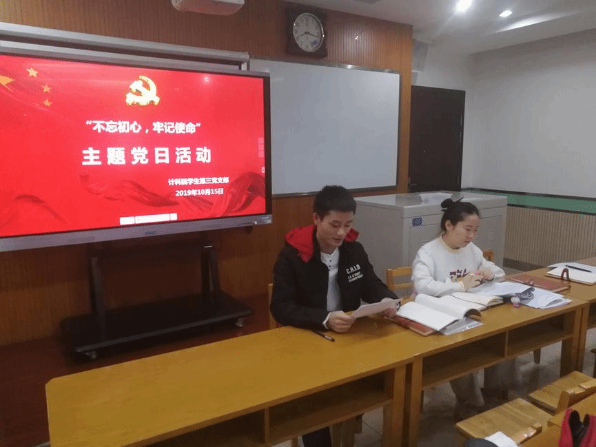 10月15日晚,龙8在线登录官网-龙8(中国)学生第三党支部在文津楼1503教室召开了“不忘初心,牢记使命”主题党日活动,支部全体党员参加了本次活动。活动由支部书记任仰主持。