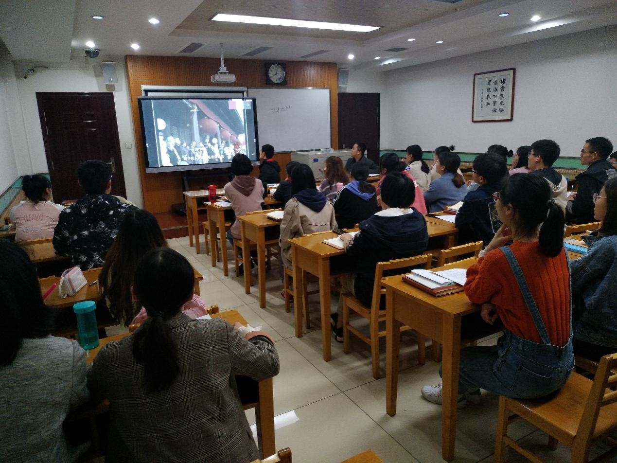 为进一步强爱国主义教育,弘扬爱国主义精神,支部成员共同观看了开国大典彩色影像,重温70年前激动人心的时刻。随后,组织委员苟元帅带领大家一同学习《习近平在庆祝中华人民共和国成立70周年大会上的讲话》,支部成员纷纷就建国70年来取得的发展成就发表了感想和体会。