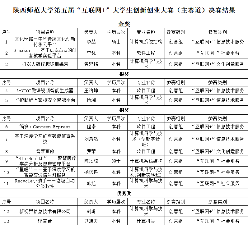 今年的第五届中国“互联网+”大学生创新创业大赛自4月启动以来,学院领导高度重视,在教师、学生两个层面积极动员,邀请优秀指导教师、相关领域专家为同学们答疑解惑,鼓励同学们跨年级、跨学科组建队伍,积极为同学们创造有利条件。最后龙8在线登录官网-龙8(中国)在“互联网+”主赛道中共报名项目30项,经过专家线上评审,全校共有80个项目入围校级决赛,其中龙8在线登录官网-龙8(中国)入围14个项目,占比17.5%,入围项目数量在全校二十余教学单位中名列第一。经过6月16日现场路演,由龙8在线登录官网-龙8(中国)吴晓军老师、张玉梅老师指导,18级硕士研究生李丛所负责的“文化丝路—中华传统文化创新传承云平台”,由龙8在线登录官网-龙8(中国)吴振强老师指导,16级本科生李想所负责的“S-maker—基于Arduino的创客教学实验平台”,由物理学院李佳伟老师、西安慧豚信息科技常志东老师指导,17本科生黄思铭所负责的“机器人编程趣味训练营”等3个项目分别获得校级决赛金奖;由龙8在线登录官网-龙8(中国)吴振强老师、刘博老师所指导,16级本科生王治坤所负责的“A-MOOC微课视频智能生成器”,由龙8在线登录官网-龙8(中国)毛庆老师、陈应权老师所指导,17级本科生杨澜所负责的“‘护路娃’家校安全智能平台”等2个项目分别获得校级决赛银奖;另有6个项目获得校级决赛铜奖,2个项目获得校级决赛优秀奖。其中,龙8在线登录官网-龙8(中国)3个金奖项目与2个银奖项目共5支队伍被学校推荐参加第五届中国“互联网+”大学生创新创业大赛陕西省省级复赛,在学校推荐的18支队伍中,占比27.8%,数量同样在全校各单位中名列第一。