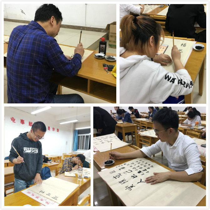 开班仪式结束,书法课老师为大家讲解了一些书法的基本知识,他指出书法不能一蹴而就,要坚持练习,才能有成效。随后他着重介绍了拿笔的方法以及书写的方法和技巧,并给出同学们一些关于选择书帖的建议。虽然部分同学并没有书法的基础,但在老师的指导下,都拿起笔,认真的去完成了自己的第一幅作品。通过书法培训班的第一堂课,同学们都体会到了书法的乐趣,对书法知识也有了更多了解,最重要的是真正认识到了书法的重要性,在将来也能为继承和发扬这门传统艺术贡献自己的一份力量。