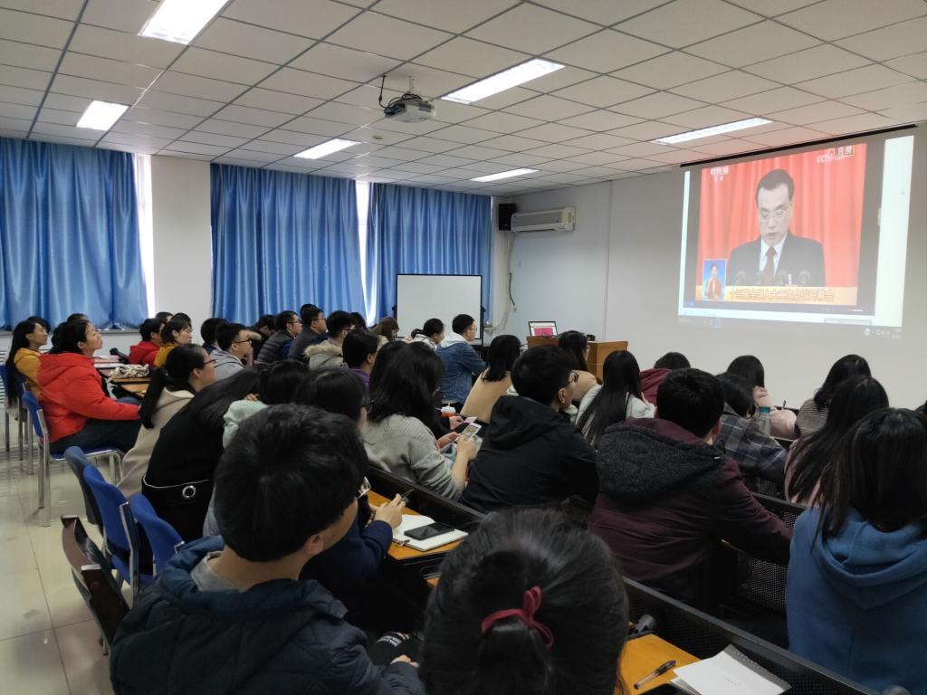 第十三届全国人民代表大会第二次会议于2019年3月5日在北京隆重开幕。龙8在线登录官网-龙8(中国)于3月5日上午9:00组织学院领导班子、教师代表、部分学生党员、团员集体观看了两会开幕会,引导其他同学通过网络、报纸、手机客户端等多种渠道实时关注两会动态,认真跟踪两会进展,深入学习和贯彻两会精神。
