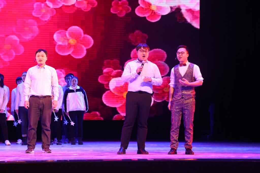 晚会以《101》和《EIEI》两首充满青春活力的歌舞开场,演员们饱含热情,展现了学院学子的积极向上、充满朝气,点燃了现场氛围。在全场观众热烈的掌声和欢呼声中,由郝飞、王奇超、武杰、王宣等教师及同学代表为大家带来了诗朗诵与歌曲《东方之珠》,他们用慷慨激昂的热情和一句荡气回肠的“请别忘记我永远不变黄色的脸”,使在场观众的民族自信油然而生。由“Theone”街舞社带来的三支街舞动感十足、充满节奏感,赢得了观众们的阵阵掌声和惊叹。歌曲串烧《love is beautiful》给现场渲染了一种抒情浪漫的氛围,优美的歌声更是令人陶醉。