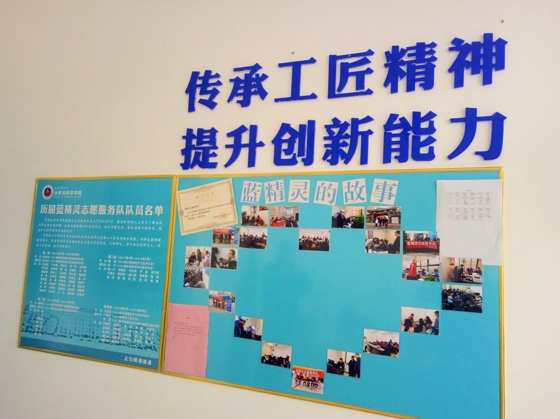 计算机科学学院蓝精灵志愿服务队由计算机科学与技术、软件工程、信息管理与信息系统专业各年级优秀本科生组成,主要解决校内师生电脑故障问题。学院加强对蓝精灵志愿服务队的工作支持与思想引领,探索将党小组建在服务队上,以“传承工匠精神,提升创新能力”为建设与发展理念,引导学生奉献社会、自觉成长成才。