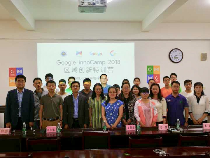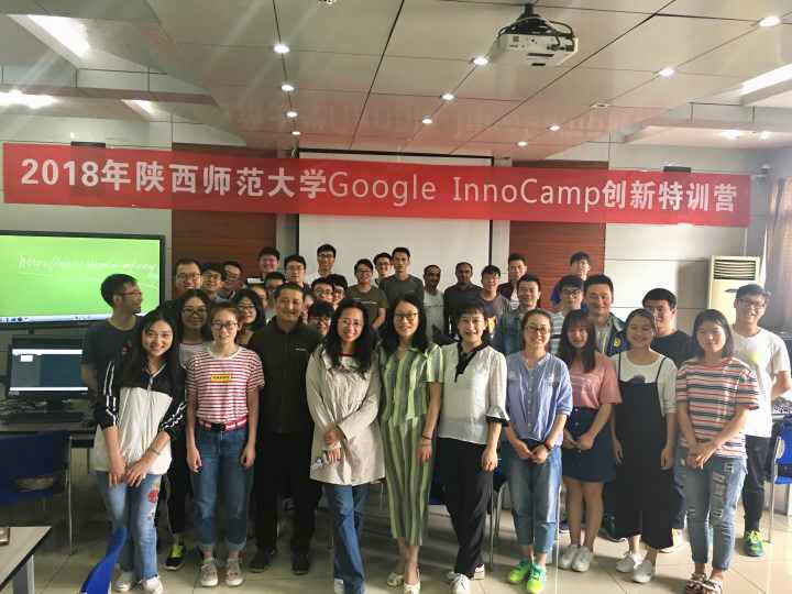 为响应国家关于大众创业、万众创新的号召,提高我校师生对Google人工智能相关技术的兴趣,开拓学术视野,促进校企合作,陕西师范大学与谷歌公司于5月27日在长安校区合作举办了主题为“人工智能技术的实践与创新应用”的2018年Google InnoCamp创新特训营活动。陕西师范大学教务处副处长许广玺、西安邮电大学教务处副处长王曙燕教授、地理科学与旅游学院副教授陈宏飞、梁伟、计算机科学学院副院长马苗教授、党委副书记袁冰、黄昭副教授参加了本次活动,计算机科学学院曹菡教授主持本次活动。我校计算机科学学院、地理科学与旅游学院部分研究生、本科生及西安邮电大学等外校同学通过网上报名和选拔参加了本次活动。