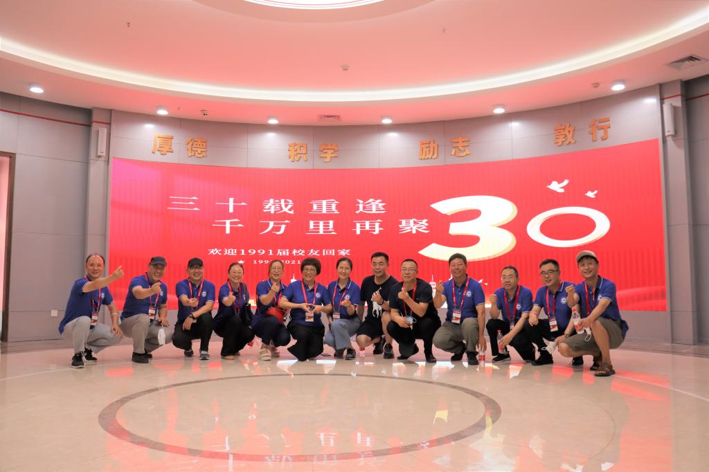 上午9点,校友们通过大屏幕观看了在上林体育馆举办的学校1991届毕业生“毕业30年校友返校日”纪念大会现场直播。