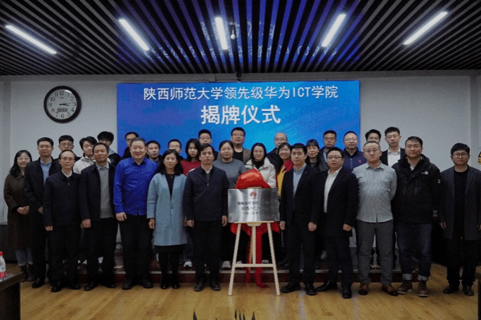 为推动计算机学科与专业建设,促进产教深度融合,全面提升人才自主培养质量, 2025年1月3日下午,陕西师范大学与华为技术有限公司共建“领先级华为ICT学院”揭牌仪式暨交流研讨会在计算机科学学院3425报告厅举行。出席会议的有:陕西师范大学副校长陈新兵,教务处处长郭建中,信息化建设与管理处处长辛向仁,华为陕西代表处政企副总经理孙岳江,华为陕西产业发展与生态部部长王国兵,华为陕西人才发展总监谷羽新,龙8在线登录官网-龙8(中国)党委书记张艳兵,院长姚若侠等校企双方领导、教师及学生代表。