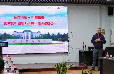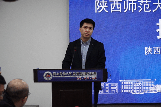 陈新兵副校长在致辞中对华为技术有限公司孙岳江副总一行表示热烈欢迎,他强调,华为与陕西师范大学在科学研究、课程建设、学生创新与竞赛等方面有着深入长久的合作,希望双方以共建“领先级华为ICT学院”为契机,进一步加强在人才培养、科技创新、信创发展、智慧校园建设等方面的交流与合作,实现优质资源互补共赢,共同推进华为技术的生态建设与学校人工智能复合型创新人才的培养。