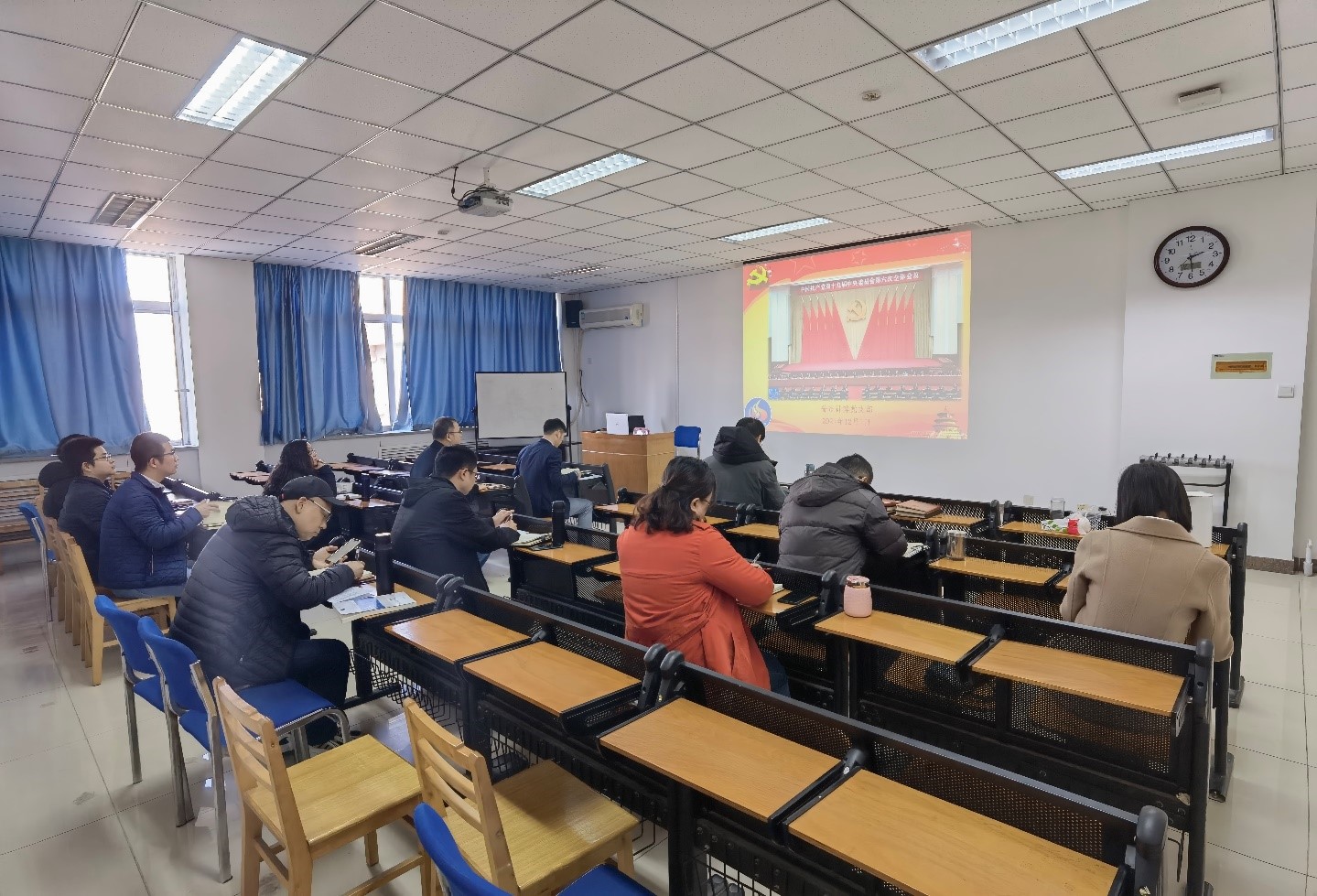 12月1日下午,龙8在线登录官网-龙8(中国)普适计算党支部在3524会议室召开主题党日活动,继续学习十九届六中全会和《中共中央关于党的百年奋斗重大成就和历史经验的决议》精神。学院党委书记王耀明和支部党员一起参加了主题党日活动。