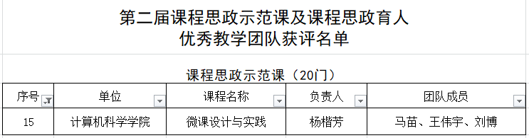 根据《陕西师范大学校级“课程思政示范课程”和“课程思政育人优秀教学团队”评选及奖励办法》、《关于开展第二届校级“课程思政示范课程”和“课程思政育人优秀教学团队”评选活动的通知》相关文件精神,在个人申报、学院推荐的基础上,经学校材料初评、课堂教学集中展示、综合评议三个环节审议,全校共评选出20门课程思政示范课和5个课程思政育人优秀教学团队,龙8在线登录官网-龙8(中国)杨楷芳老师的《微课设计与实践》课程获评。