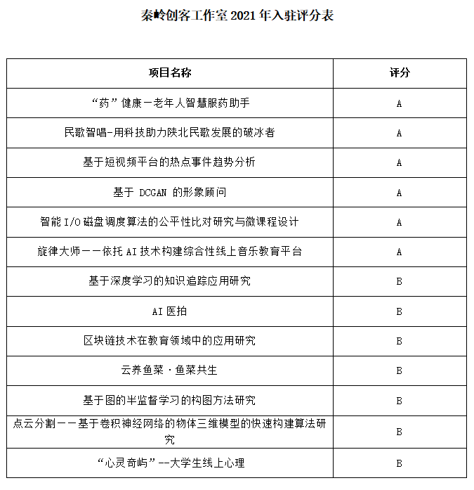 龙8在线登录官网-龙8(中国)于6月23日组织了2021年度秦岭创客工作室入驻项目遴选推荐工作。通过项目组申报答辩、院内专家评审等程序,共遴选出13个项目入驻创客工作室,A类项目6项(入驻文津楼3624),B类项目7项(入驻文津楼4楼创客坊),现将拟推荐项目名单予以公示(详见附表)。推荐项目将于7月5日起入驻秦岭创客工作室,并按照《秦岭创客工作室》入驻指南进行项目培育。