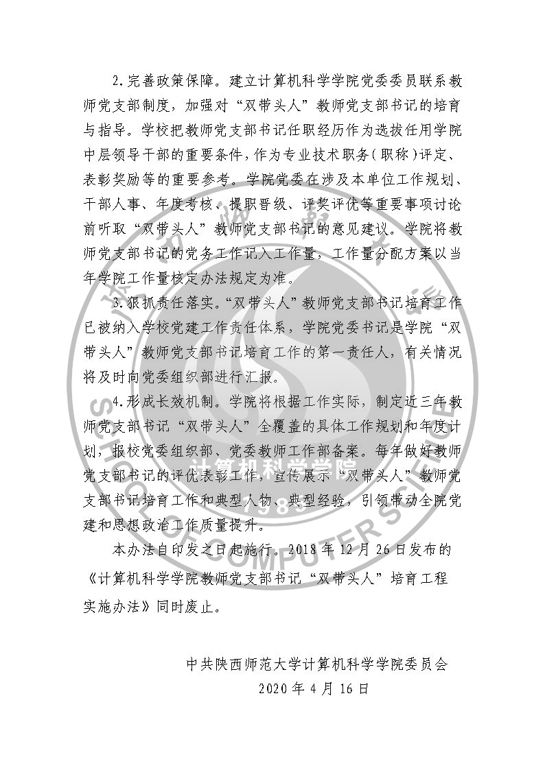 计算机科学学院教师党支部书记双带头人