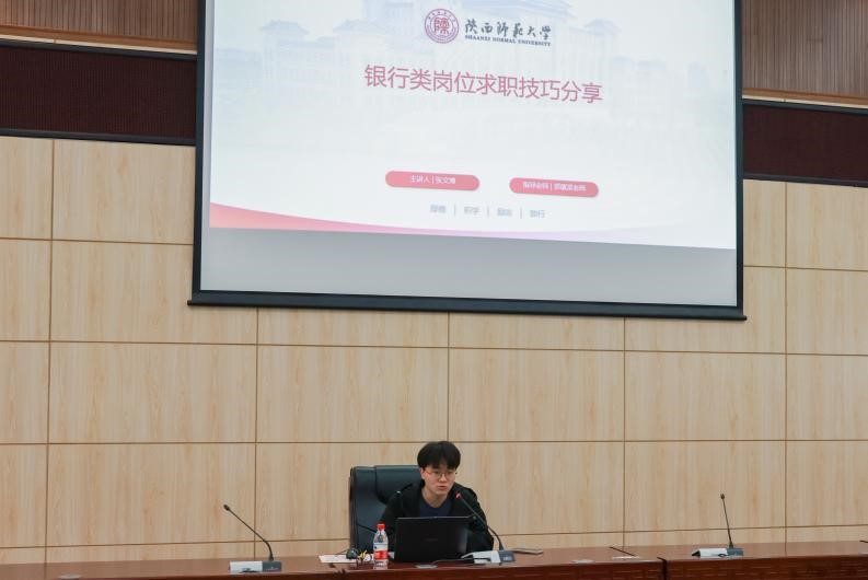 签约西安农发银行的2023届研究生张文博从中国银行体系、网申、笔试、面试等方面为做经验交流。他建议同学们尽早考虑好就业意向和方向,他强调除了专业课知识,也要重视行测和申论等其他科目的考查;在面试方面,张文博介绍了三种面试形式的基本考察内容。