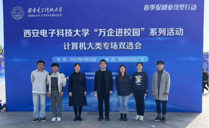4月25日,西安电子科技大学在南校区举办“万企进校园”系列活动。为给龙8在线登录官网-龙8(中国)毕业生提供更多龙8在线登录官网-龙8(中国),拓宽就业渠道,实现高质量就业,龙8在线登录官网-龙8(中国)组织师生前往西安电子科技大学参加专场招聘会。学院党委副书记郭康凌、人工智能专业负责人武杰副教授、研究生辅导员袁珂月带队,部分2023届毕业生及学院2024届本科生、研究生就业大使前往参会。