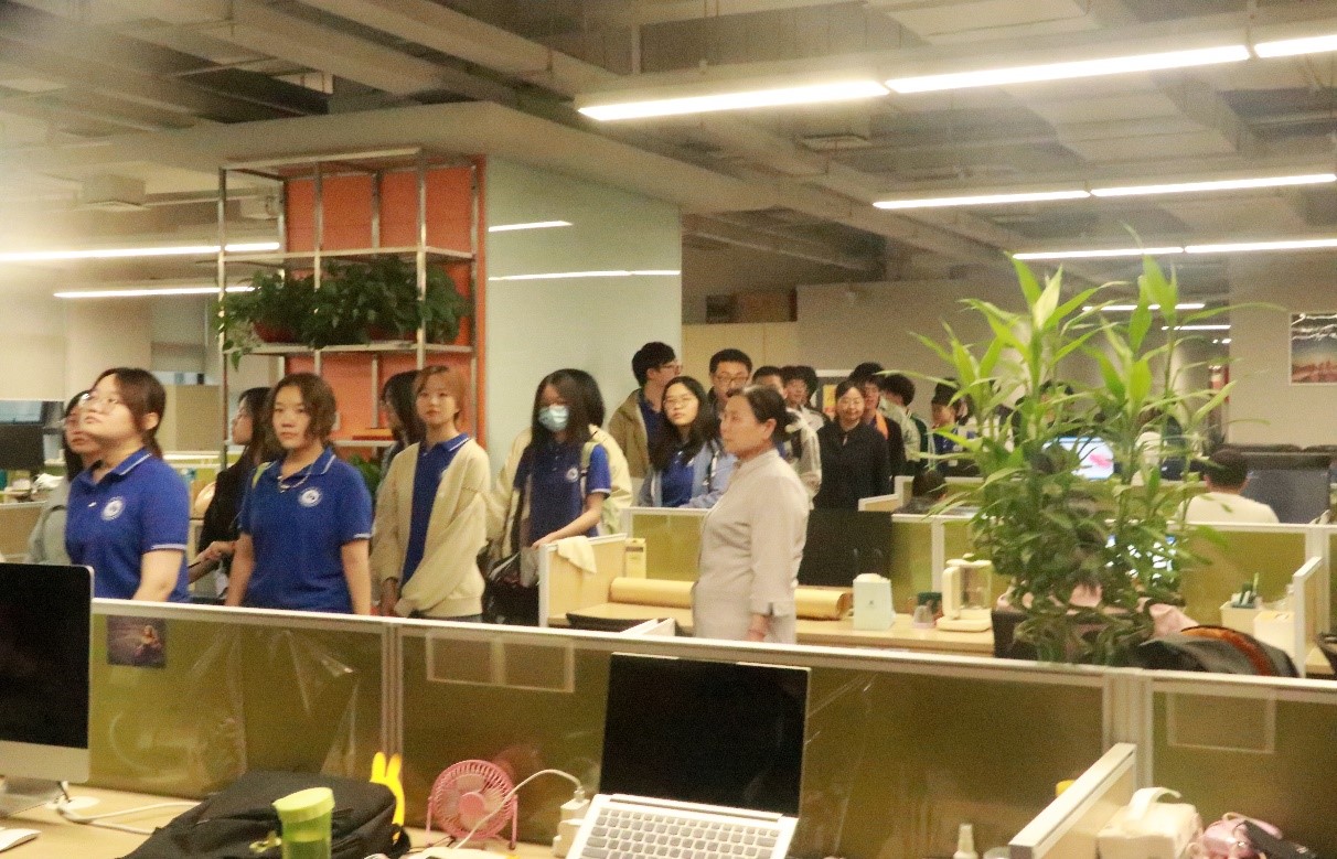 学院师生随同单位负责人依次参观了人事行政服务大厅、行政服务区、财务部、培训室以及面试区,真实地感受了企业的工作氛围和软件工程行业的就业环境。期间,企业就公司概况、发展前景、用人需求标准和员工福利待遇等情况进行了说明,并为学院人才培养方向提出建议。